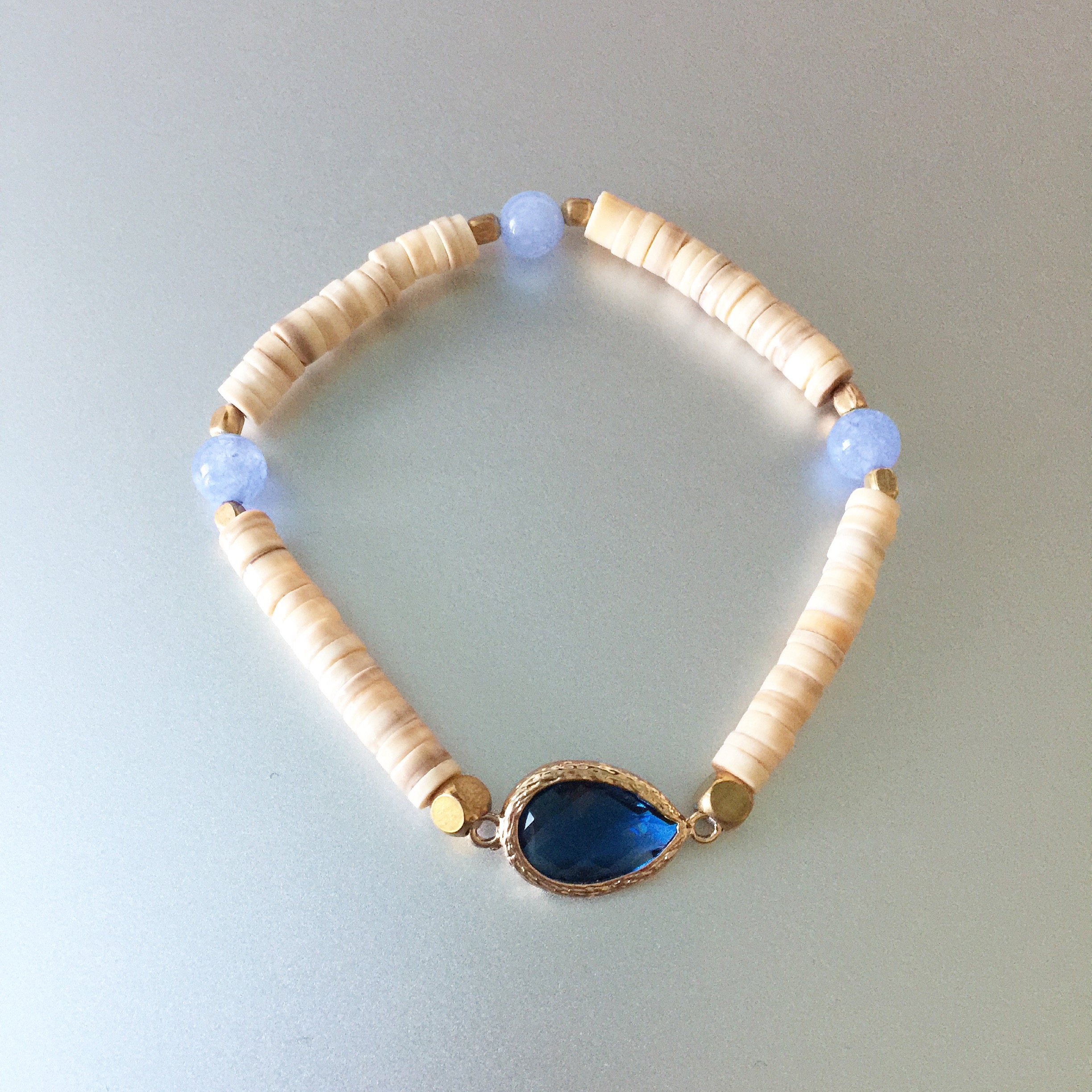 Abby Beaded Boho Wood Stone Navy