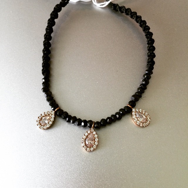 Sasha Sterling Beaded Charm Bracelet Tie Black