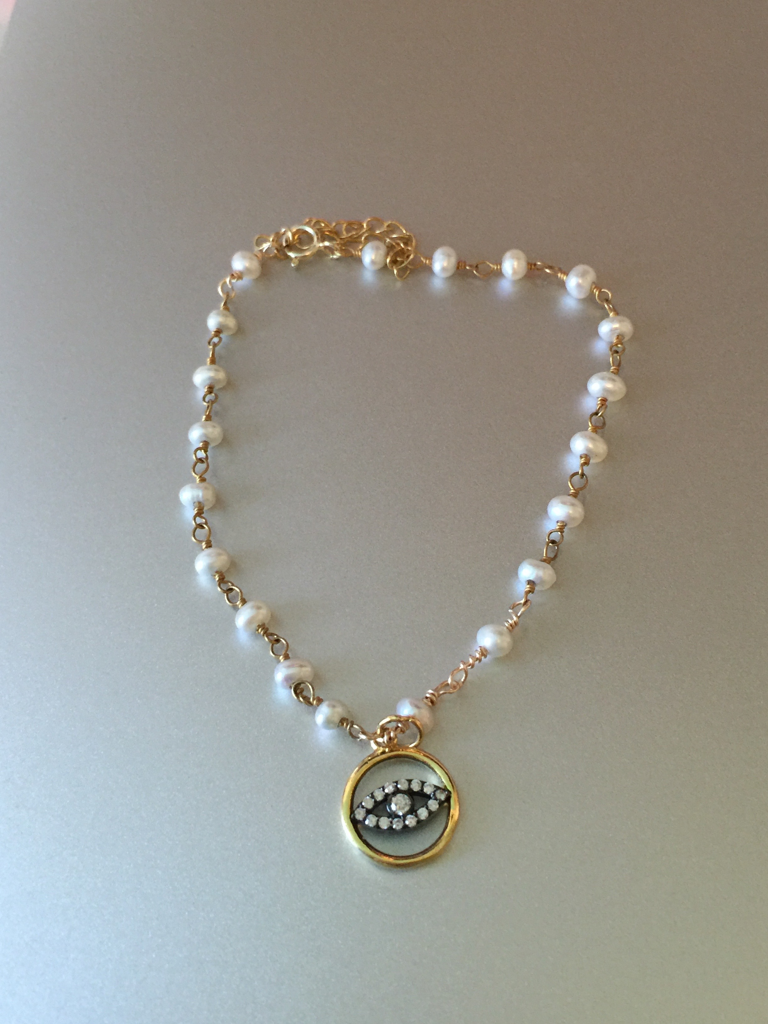 Sasha Sterling Beaded Pearl Evil Eye Bracelet