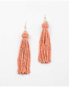 Abby Beaded Ball and Tassel Earrings Coral