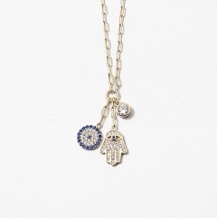 Sasha Sterling Charm Necklace Evil Eye & Chamsa